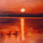 Abendstimmung mit einem Entenpaar, Acryl38 x 46 – verkauft